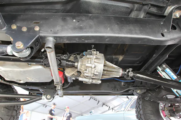 The transmission is built to handle every bit of power the LS puts out. It’s an A&S Transmissions Stage 2 4L80E with a 2,800 rpm stall converter, a CSF cooler, and Speedflow lines. Power flows into a Chevy 2500HD transfer case that has been rebuilt and upgraded.