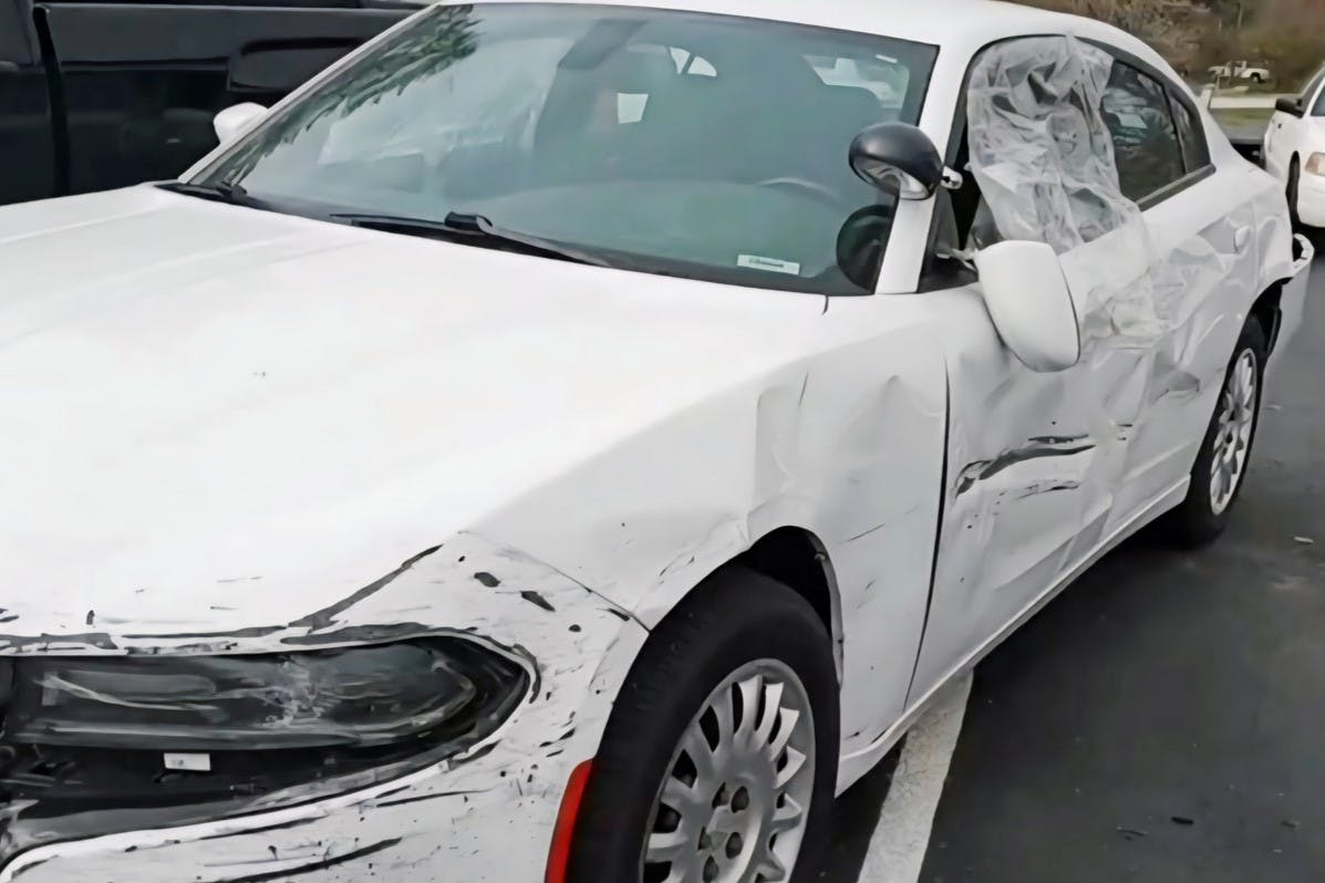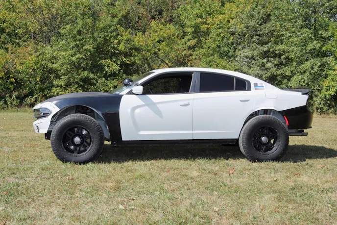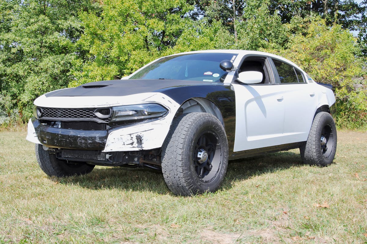 When Erica and her husband came across the decommissioned 2017 Dodge Charger Pursuit AWD, it was a wreck—literally. After duty with a law enforcement agency, the car had been “retired” to a training facility, where, among other things, it was used for PIT-maneuver practice. Nearly every body panel was scarred, the bulletproof glass was cracked, and a bent rear control arm left it undrivable. Still, Erica and her husband—owners of Bulletproof Garage—saw potential where others saw scrap.