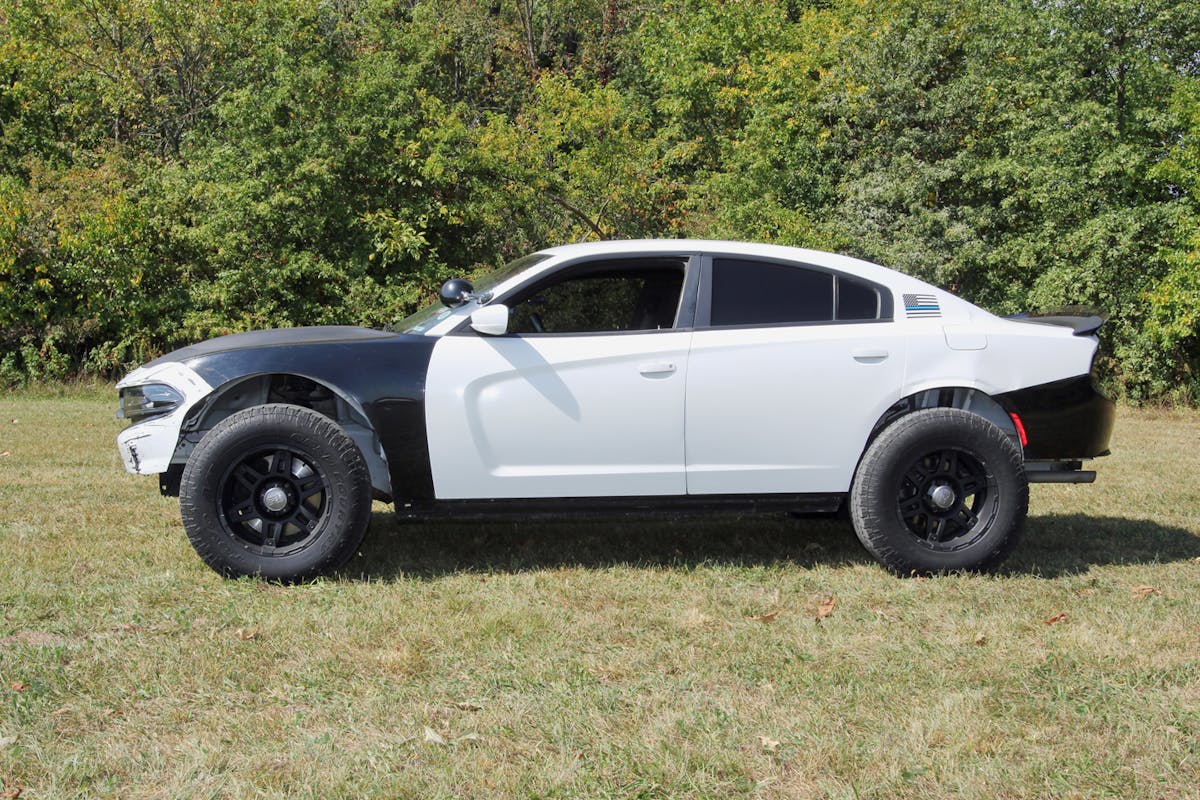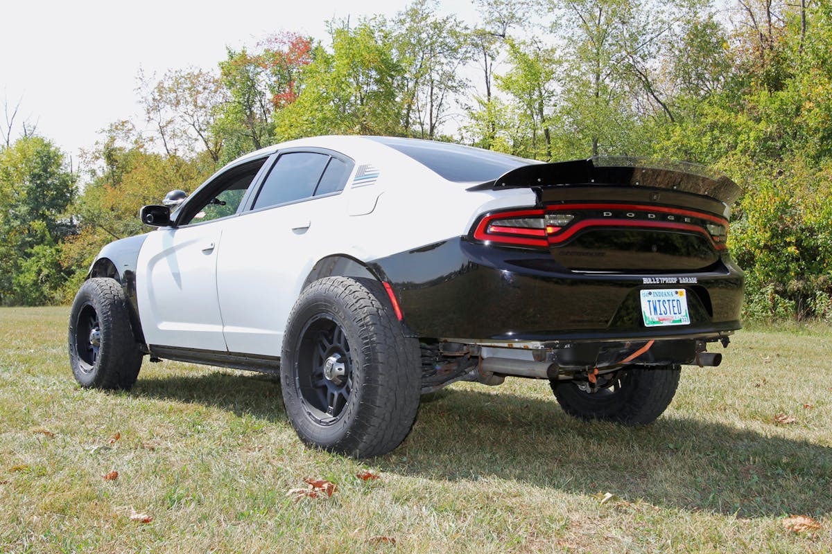 Erica Welch of Camby, Indiana, once owned a 2021 Dodge Charger Scat Pack, but parking it for the winter grew old fast. At one time she’d owned a lifted, four-wheel-drive Corvette, and that sparked an idea. Why not create something with the Scat Pack’s spirit but ready for snow? The result: an ex-law-enforcement, all-wheel-drive, lifted 2017 Dodge Charger Pursuit rolling on 33s.