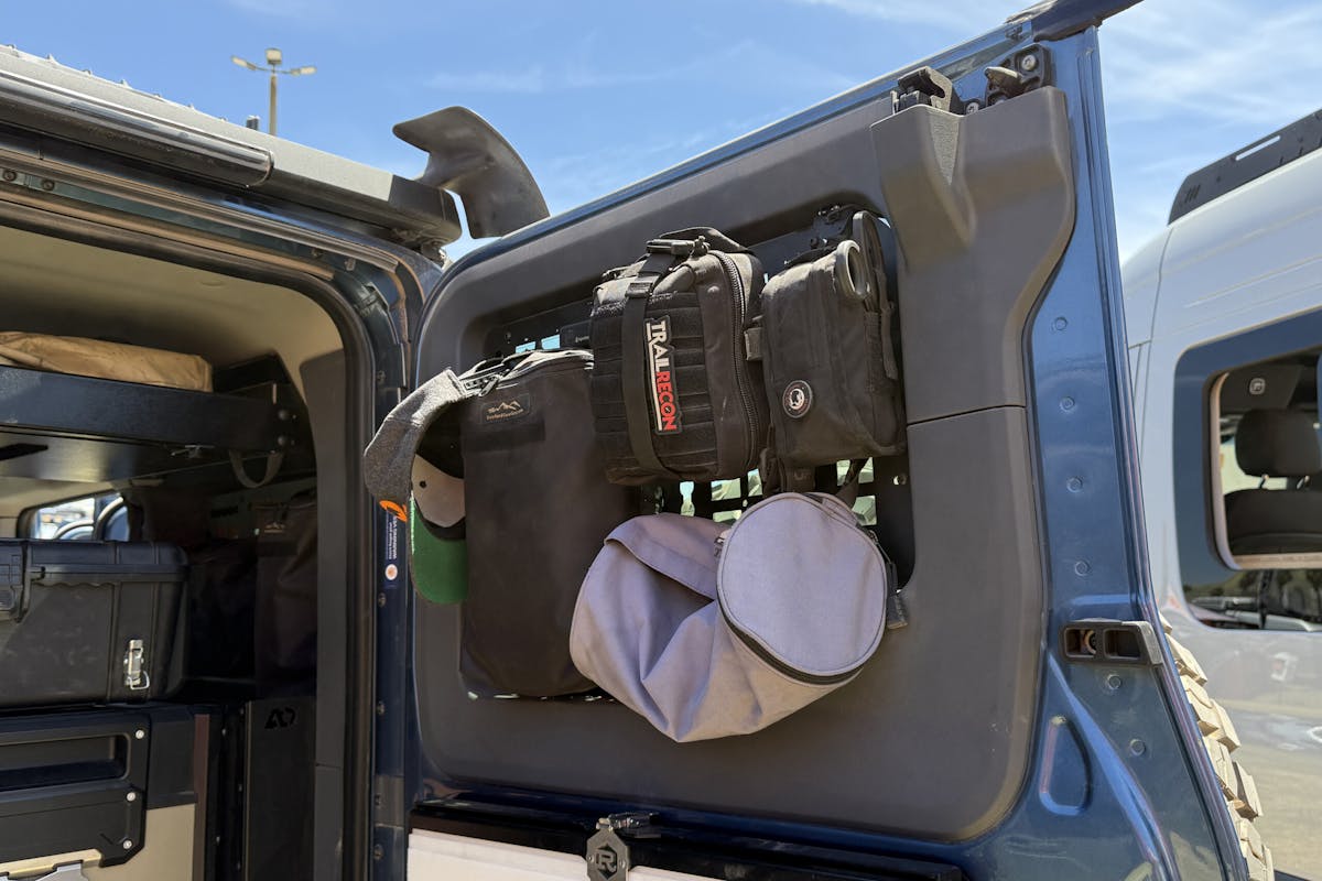 Inside, the Grenadier is fit with the company’s driver and passenger side A-pillar grab handles along with an OSH grab handle mount. Safari window shades help keep the sun from beating down through the opaque roof. And Inhabit floor mats add a touch of style while also being incredibly easy to clean. The rear hatch is outfit for maximum storage with a host of bags, boxes, and racks.