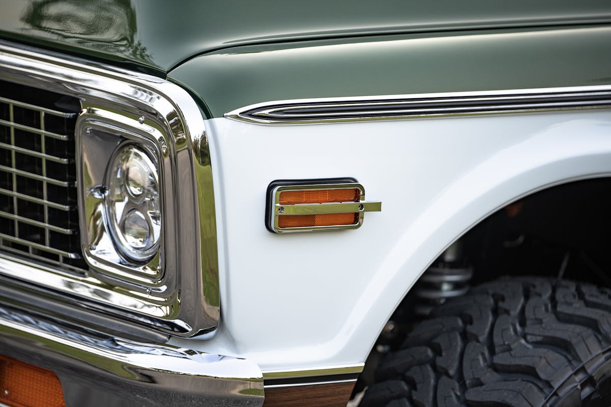 From the factory, the largest engine option for the K5 Blazer was the 350 V-8 with the 250 inline six-cylinder as the standard. For the Signature Series K5 Blazer, Velocity calls on the Chevrolet Gen V LT1, a 6.2-liter engine modestly rated at 460 horsepower. With more than twice the gears GM ever offered, a 10-speed 10L80 transmission will do all the work shifting for the driver. Engine speed stays low and quiet when you’re driving from the Cass Corridor up the Lodge to the Pancake House. When you’re ready to play the Michigan state anthem, press the loud pedal and sing the song of internal combustion burning fuel through a complete custom exhaust with Magnaflow mufflers.