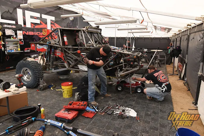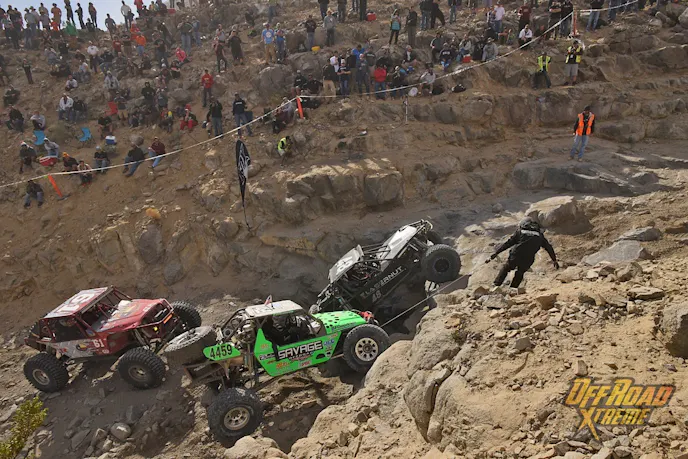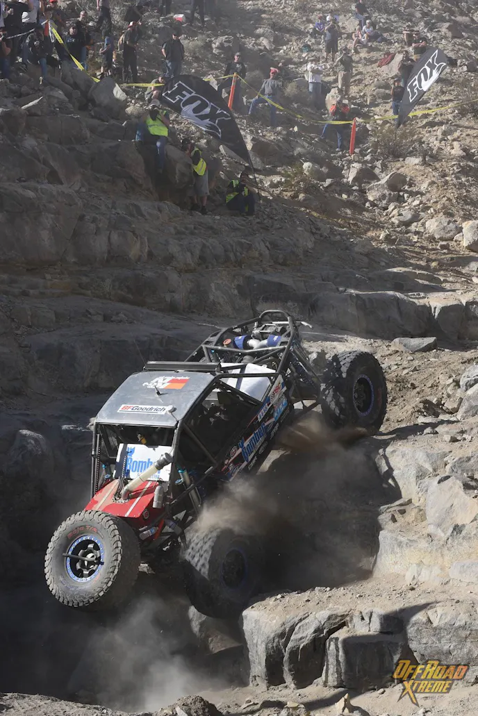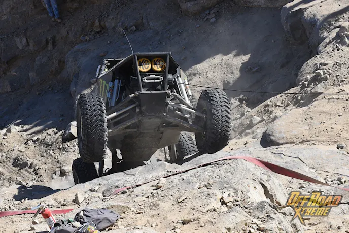 This year’s King of The Hammers was made up of three loops totaling 215 miles (the longest course in the history of the race), including high-speed open desert racing with more than a quarter of that course covering rocky canyons and mountain ranges. These boulder-filled stretches included locations that can only be described as “obstacles,” and had names as ominous as their terrain. Among them were Jackhammer, Outer Limits, Chocolate Thunder, Wrecking Ball, Boulder Dash, Aftershock, Clawhammer, Sledge, Crowbar, and Backdoor.