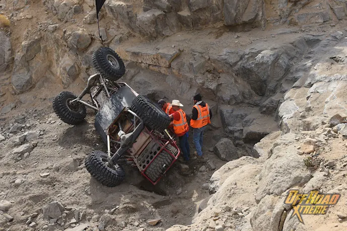 ”Approaching Jackhammer, I noticed a ‘clunk’ and realized that a suspension limiting strap had stretched so much that a CV over-traveled and fell apart. I knew that with three-wheel drive, winching was inevitable. Jackhammer was like San Francisco traffic at rush hour, so I got permission to take the right-hand line and winched it to the top. Unfortunately, that effort overheated the engine, and I lost all water in the radiator. I tried everything (yes, even that) to refill the cooling system, but to no avail. At that point, I made the tough decision to call the race.”