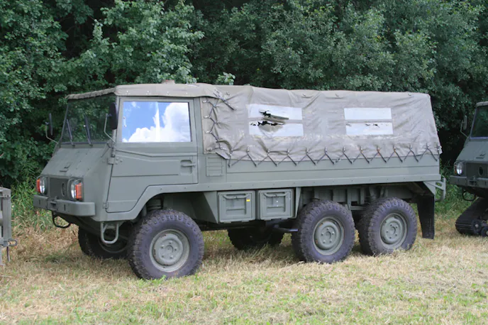 Though mostly marketed as a military vehicle, the Pinzgauer was also available for civilian use, with just over 18,000 units produced for the combined military/civilian first-generation.
