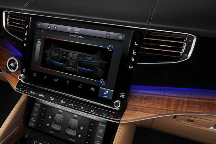 It’s not just the naming that’s been updated; the 2026 Jeep Grand Wagoneer receives a redesigned front end and larger palette of colors to choose from. A new fascia brings a taller, squared-off stance, accentuated by a wide grille with illuminated seven-slot detailing and full-width LED lighting. From the T-shaped LEDs in the lower fascia to the matching horizontal taillamps, every inch is designed to convey capability and class.