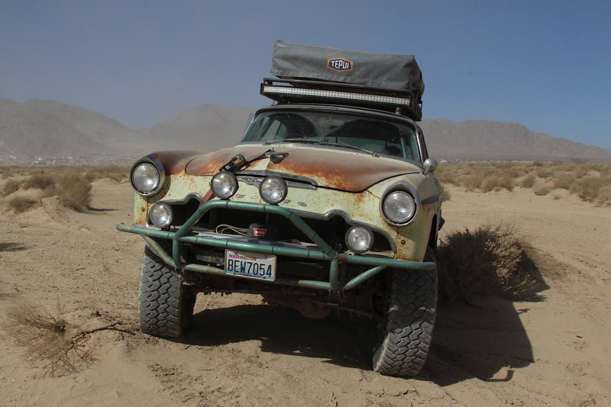 2020 marked an important event in the history of the Ultra4 King of the Hammers. It was the first time that the Gambler 500 made a mark on the event, running a HooptieX on Saturday following King of the Motos. Thanks to this intriguing turn of events, it was practically assured that we’d see some unconventional and awe-inspiring builds during KOH Week. Dave Mackey and his 1958 DeSoto fulfilled that prediction, and then some.