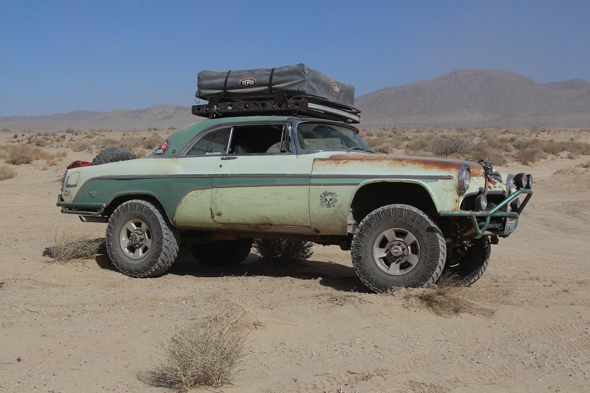 2020 marked an important event in the history of the Ultra4 King of the Hammers. It was the first time that the Gambler 500 made a mark on the event, running a HooptieX on Saturday following King of the Motos. Thanks to this intriguing turn of events, it was practically assured that we’d see some unconventional and awe-inspiring builds during KOH Week. Dave Mackey and his 1958 DeSoto fulfilled that prediction, and then some.