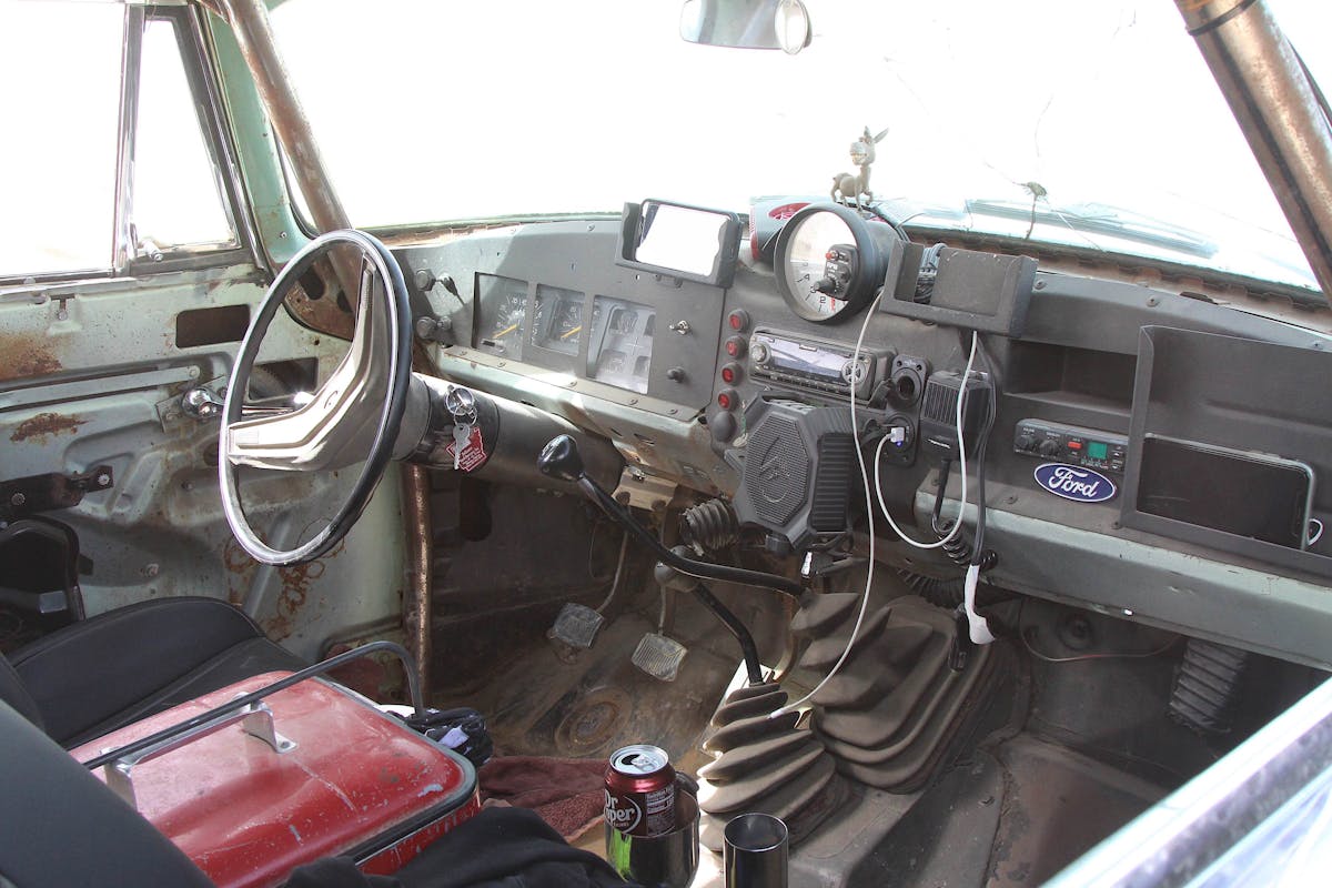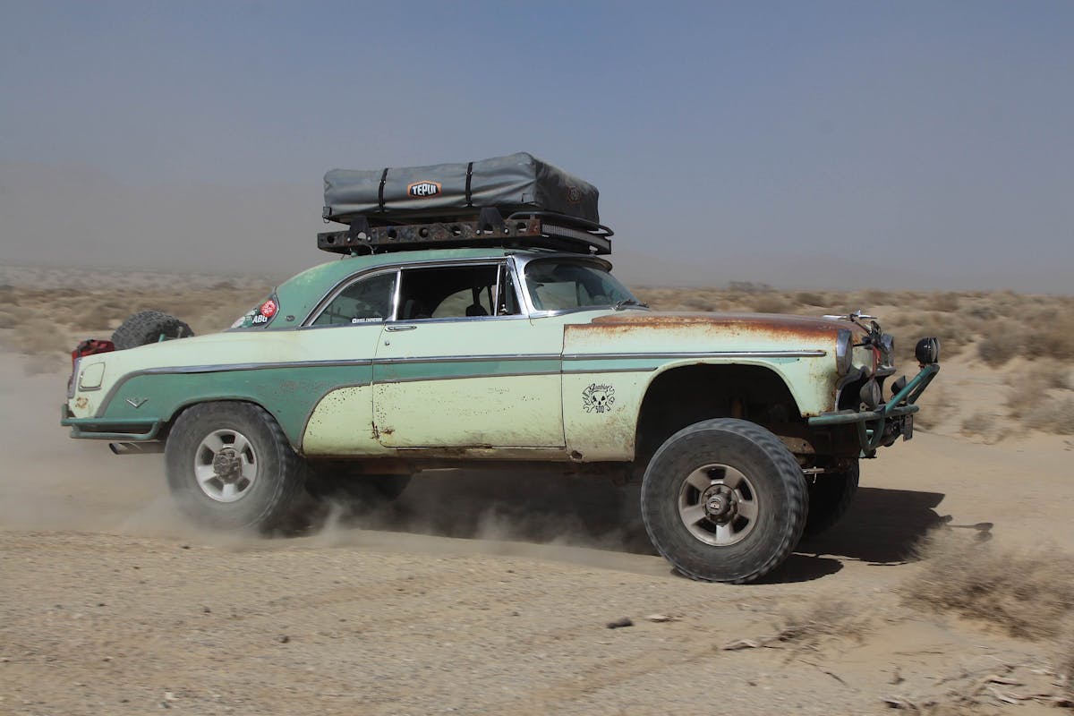 I spotted Dave’s lifted coupe rambling around the lake bed on Saturday. Against the strong winds and clouds of dust floating around, he and a friend were defying nature with windows down and spirits high. I hailed Dave down as soon as I saw the distinctive teal bumper and faded exterior.