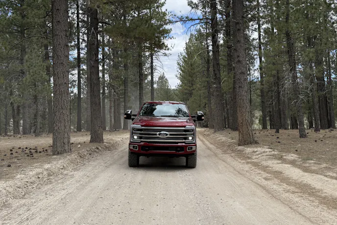 With such a large amount of torque available one would surmise that driving the 2025 Ford Super Duty without a load would be a handful. Thankfully, that is not the case. Ford has done such an excellent job of integrating the engine’s throttle mapping with the transmission’s shift schedule that piloting the most powerful pickup on the market was as comfortable as driving a Ranger. Power delivery is linier without any alarming boost-related spikes, and we found the transmission shifting to be smooth and always on-point. With light throttle the truck was docile and easy to maneuver. However, when the need for speed arose tipping into the power resulted in steady freight-train-like acceleration. Passing and merging are a serious non-event. And apologies to the owner of the 2025 Ram 2500 that we left sitting at the stop light.