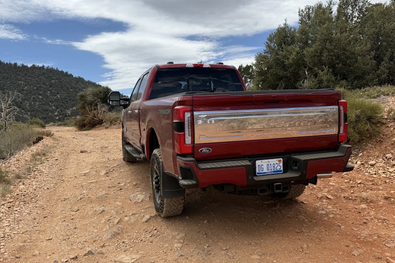 Despite all the positives, we do have a few small gripes about the 2025 Ford F-250 Super Duty Tremor. We’d be remiss if we didn’t address the four-ton elephant in the room. At its core this is still a nearly 8,000-pound pickup that’s primarily built for towing and hauling. No amount of suspension magic is going to make it ride like a Raptor and thinking in such a way is just fooling yourself. That said, with a sticker price north of six figures we wouldn’t be mad if Ford increased the Tremor package cost and fit the truck with a set of Fox dampers like it did on the early Ranger Tremor models. The twin-tube shocks just aren’t enough.