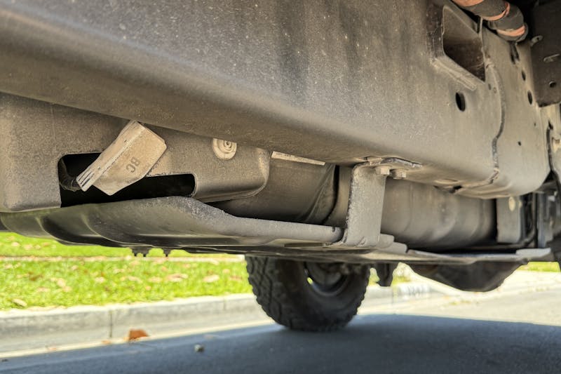 We’d also like to have a quick chat with whomever made the decision of what skid plates to include and, more importantly, exclude. The transfer case skid plate is robust and offers great coverage. And we always appreciate a solid fuel tank skid plate. However, the most vulnerable parts of the undercarriage are still left unprotected. The engine’s oil pan, a fluid cooler and hoses, and the engine’s plastic oil pan are all out in the open. All it takes is one poorly placed rock to jump past the front axle to make for one very bad day.