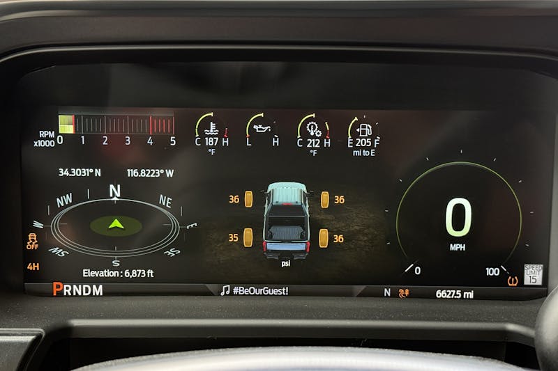 Trail Control is always a neat party trick. While we’re thankful for all the off-road drive modes we still find ourselves often picking our own combination of vehicle settings. We also appreciate that Ford has given the Super Duty an intuitive dash design, placing all the off-road controls in an easily accessible and logical location. The off-road information screens in the driver information screen and head-up display were the Chef’s Kiss.