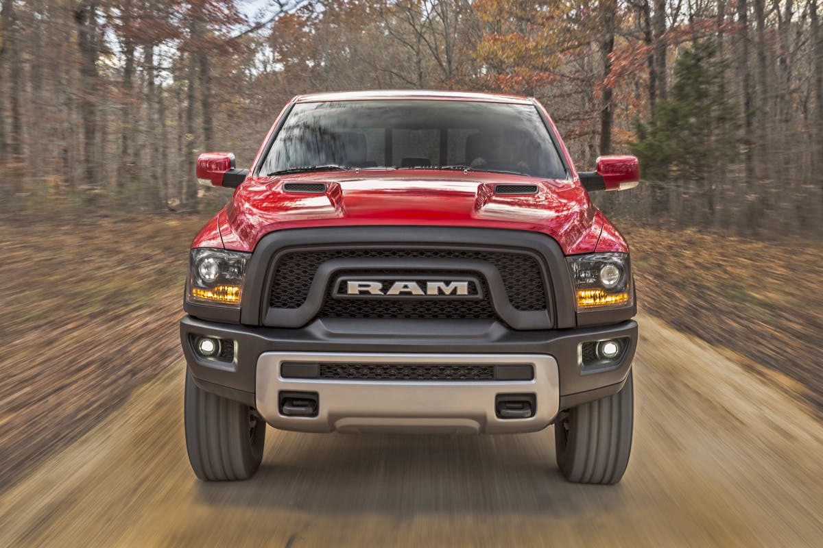 The 3.6-liter Pentastar V6 is available in 2×4 and 4×4 models, but the 5.7-liter HEMI V8 is only found in 4×2 models. HEMI-powered Rebels can be ordered with 3.92 or 3.21 gear ratios whereas 3.6-liter Pentastar V6 models only offer a 3.92 gear ratio. An eight-speed automatic transmission is standard on both engines, and can be ordered with a rear anti-spin differential.