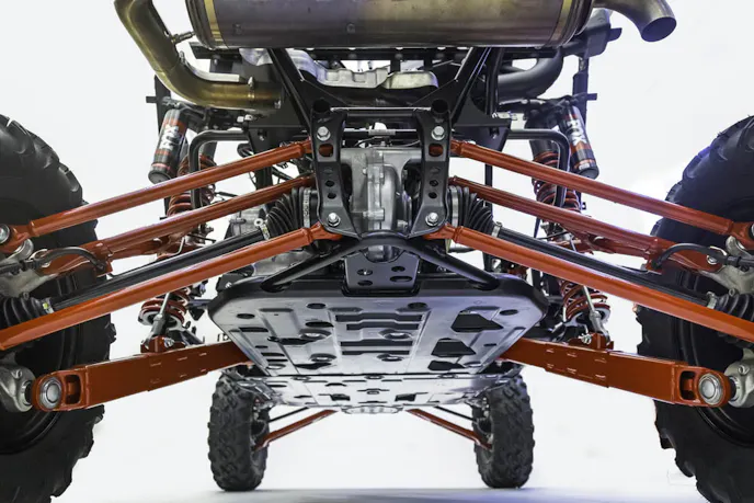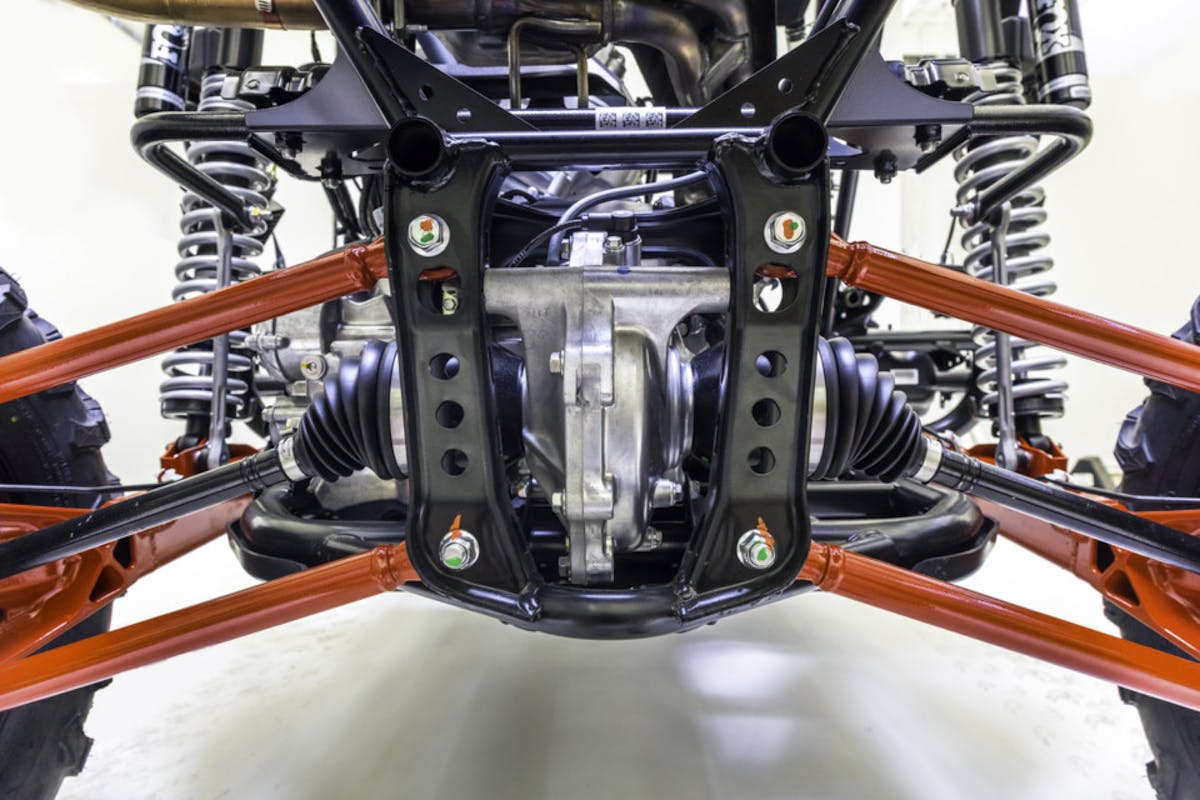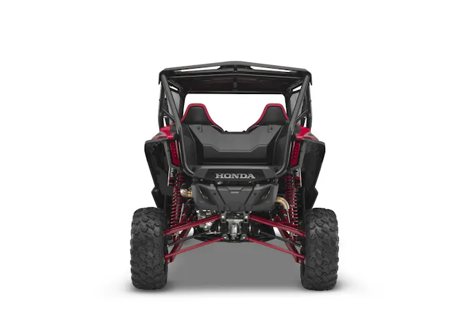 Although a double-wishbone suspension remains out front, a full four-link layout now resides in back, with the Fox Podium QS3 shocks swelling to 2.5 inches in diameter. This means you get up to 17.1 inches of front and 20.1 inches of rear suspension travel, a full 2.1 and 5 inches more than the standard 1000X.