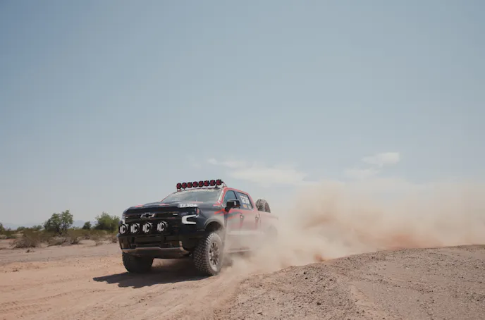 The first race for the Silverado ZR2 was the 2021 King Shocks Laughlin Desert Classic run by Best in the Desert (BITD). Racing as #1230, the truck won its class on both days and finished 12th overall in its group with a 1:10.56 on Saturday and 1:23.32 on Sunday.