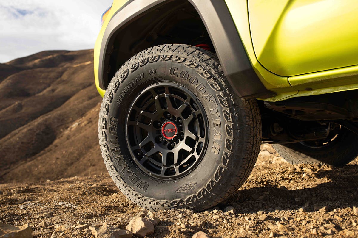 Like the Trail Edition, TRD Pro also gets a new set of wheels that are wrapped in the same Goodyear Wrangler rubber. The truck also gets an Electric Lime Metallic paint scheme and new TRD decal options. Toyota will announce the pricing off its new Tacoma models in the fall.