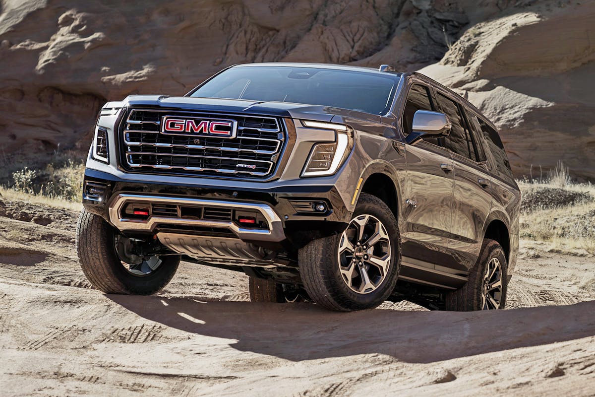 GMC says the AT4 package is “For those looking to push the boundaries in premium off-roading.” The current (2024 model year) GMC Yukon and larger Yukon XL equipped with the AT4 package include the AutoTrac two-speed transfer case, an approach angle of nearly 32 degrees, and all-terrain tires. Additionally, a front skidplate, high-capacity air filter, and hill descent control. AT4-equipped Yukons and Yukon XLs can have an available air-ride adaptive suspension, a 6.2L V8 engine, and an Active Response 4WD System with an electronic limited-slip rear differential.