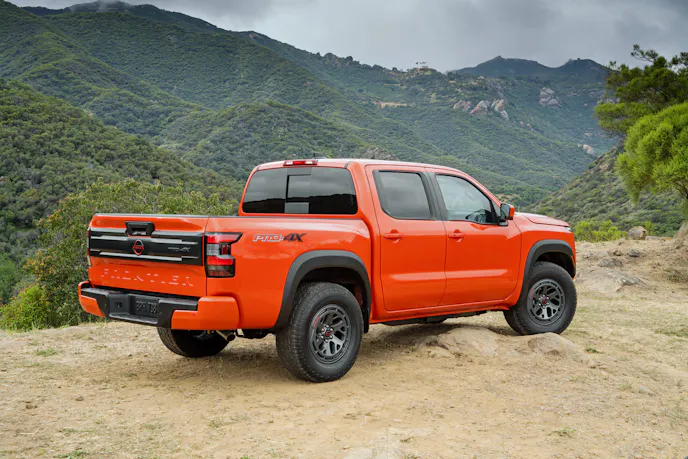 Also new for the 2025 model year, the crew cab long-wheelbase configuration with 6-foot bed has been expanded from SV to SV, PRO-4X and SL grades. This increase in bed size will be welcome by those looking to carry larger loads. And on the topic of loads, Nissan has bumped up the maximum tow ratings of the Frontier. The company says that they’re now up to 7,150 pounds (SV grade, 2WD, King Cab). For the crew cab, short wheelbase, PRO-4X model, the 2025 Frontier offers a max towing capacity of 6,680 pounds versus the 2024 model’s 6,170 pounds. Maximum tongue load also increases from 617 pounds to 668 pounds. Finally, if you’re into bright paint, there’s a new color called Afterburn Orange in Frontier’s palette of available color choices.