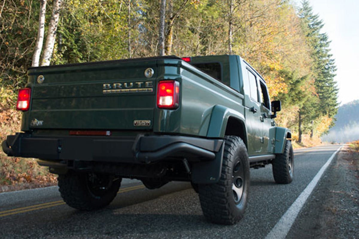 All by itself, the AEV Brute is something else. Based on the Jeep Wrangler Unlimited, it is converted into a pickup by AEV’s manufacturing arm, Quality Metalcraft in Michigan. The four-door gets 23-inches added to its wheelbase, another 16-inches to the rear overhang, and keeps the stock dimensions of the cabin, while featuring a 61×60-inch cargo bed. About 75-percent of AEV’s parts are built in house at Quality Metalcraft, the rest are manufactured to order by Tier 1 OEM suppliers.