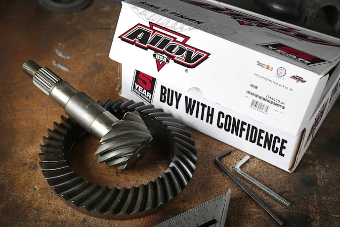 Alloy USA Ring & Pinion Set for Jeep JK Wranger (High Res)So you’ve got a brand-new Jeep JK Wrangler, and you just got back from the local wheel and tire retailer, where a sweet set of oversized tires were picked out and installed, and now the vehicle feels like a slug when you hit the accelerator. There’s a simple fix for this–more gear! And thanks to the guys at Alloy USA, six different gear ratios are available for the JK Wrangler.