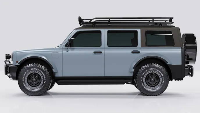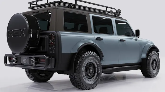 According to Alpha, the SUPERREX is approximately 200 inches in length, 76 inches wide, and 71 inches tall. Consequently, it’s 10 inches longer, 2 inches wider, and 3 inches taller than Alpha’s two-door REX electric SUV. For further comparison, SUPERREX is approximately 11 inches longer, 2 inches wider, and 2.5 inches taller than a 2024 Jeep Wrangler four-door. SUPERREX was unveiled in “Whisper,” a satin blue exterior finish. The SUV will be available with 16- to 18-inch wheels, it’ll include LED signature headlights, and daytime running lights.