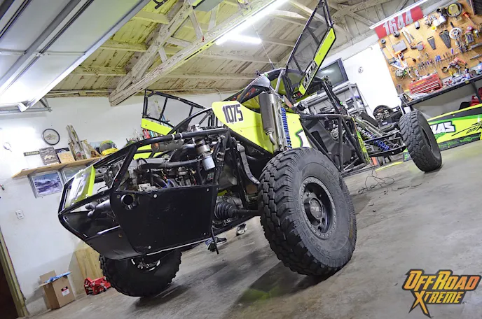 The team had the car at their fabrication shop one that is home to one of the most well known fabricators in all of Baja, along with a couple other teams. Some last minute modifications to the rear shock tower for added strength is what the team was working on.