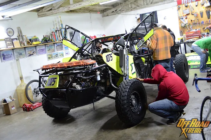 Finishing up the welding the buggy was taken over to Chinolas Motorsports headquarters to get everything they would need strapped into the car before contingency first thing in the morning. Everything is laid out and the extra parts need to find a new home on the buggy.