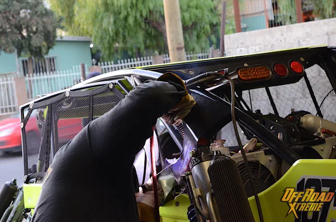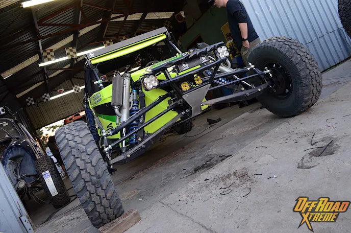 The team had the car at their fabrication shop one that is home to one of the most well known fabricators in all of Baja, along with a couple other teams. Some last minute modifications to the rear shock tower for added strength is what the team was working on.