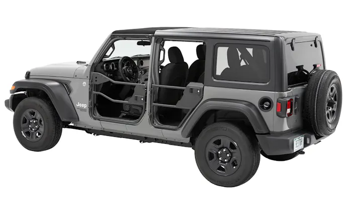 The doors can be purchased in a matte black 2-door or 4-door option, equipped with automotive-rotary paddle handles. The doors also boast fully-welded construction with retention straps and mounting points for Bestop’s Highrock 4×4 Mirrors for bolt-on convenience.