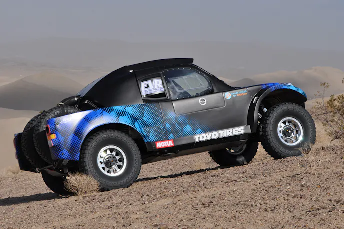 AJ transformed a Model 3 into a Tesla Monster Truck with a bolt-on chassis. This prerunner handles Baja terrain with ease.