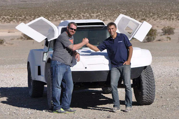 The truck the pair will pilot, is built by Jefferies Racing, one of the leading manufacturers of off-road race vehicles for U.S. racing (SCORE, NOHR, BITD and others,) as well as FIA ever since it built two prototypes for Red Bull’s Qatar team for Dakar in 2012. The Chevrolet Colorado bodied vehicle is a mid-engine/rear-wheel drive layout powered by a Corvette LS7 race engine with a 39 mm air restrictor (per rules) that cranks out 350 hp at 3,800 RPM and 479 foot-pounds of torque. It’s backed up by a Fortin six-speed sequential gearbox. The four-wheel-independent suspension design, damped by King coil-over bypass shocks, is set up to run on 35- or 37-inch Toyo tires. Top speed is estimated at 113 MPH.