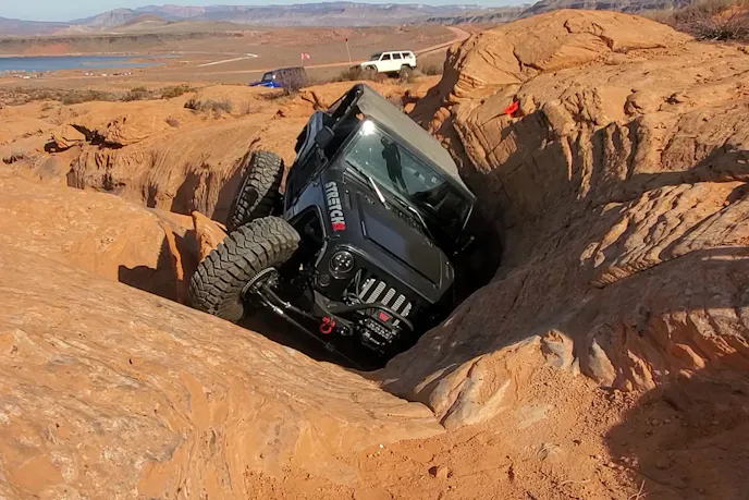 The big Jeep utilizes Spicer Ultimate 60 axles. Zach said, “They are real heavy-duty axles and the strongest we could find for the weight class.” KMC Machete beadlock 17-inch wheels are wrapped with 42-inch Maxxis Trepador rubber.