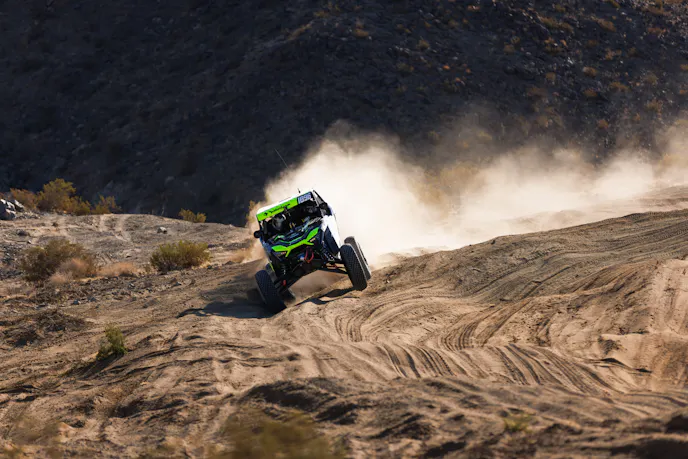 Behind the wheel of his specially modified Gen 1 RZR Pro R Factory, Heger executed a flawless race strategy. After qualifying third, he quickly moved to the front of the pack during the desert portion of the race.