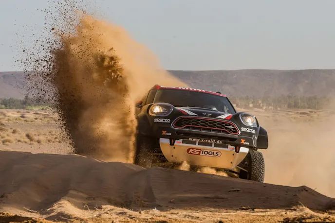 Earlier in 2016, Menzies set the World Record for the farthest distance jump in a truck, at 379.4 feet, in his Pro 2 off-road truck. A second attempt ended up a ball of wrecked steel and a broken shoulder. During his recovery, Menzies linked up with the John Cooper Works Rally team and X-raid. Their goal is simple; Attack the 2017 Dakar.