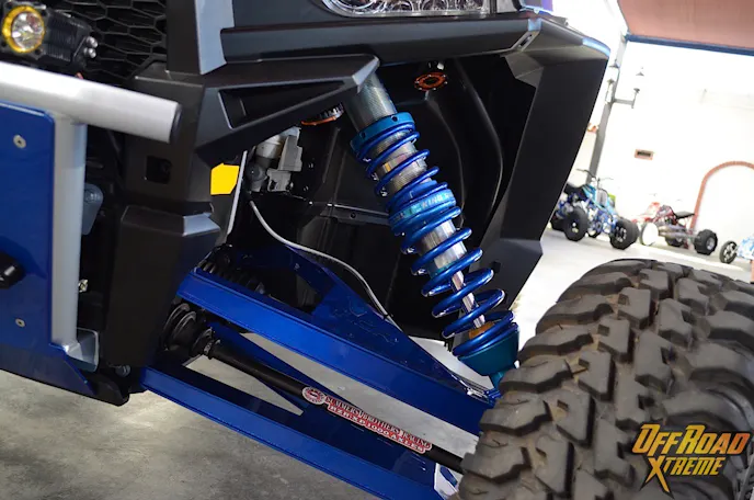 SXS Performance built this Bud Light RZR XP 4 1000, with Proline Wraps setting off the UTV with its familiar blue bubble beer can look. Not only does this RZR look good but everything on it is done with a purpose and increases the overall performance of the vehicle.