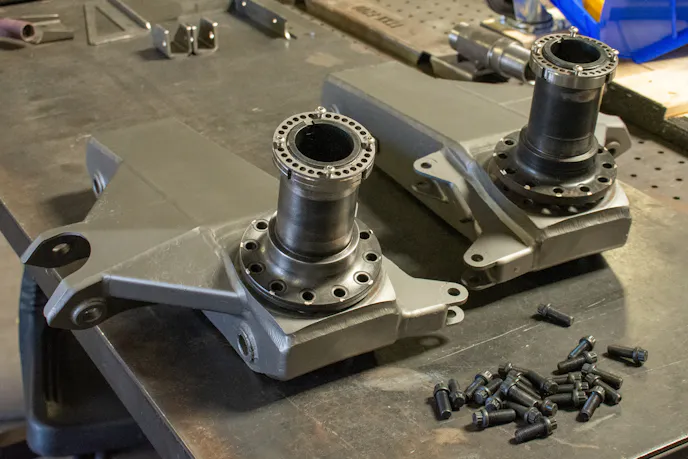 Billet is in and these trucks can be optioned with billet front spindles, rear links, and even steering components. Not only do these parts add strength, but the visual aesthetics are totally worth it.