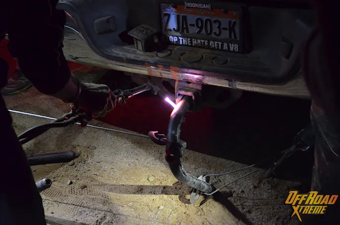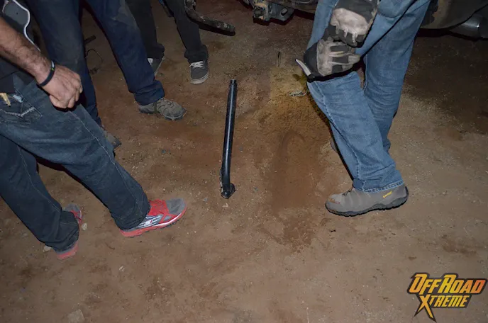 The gremlins would not get any easier as the race progressed. After grabbing some food, a more serious call came in. The buggy had bent both upper control arms, and they were attempting to fix them in San Jacinto with the sound of waves crashing in the background. The team only had one replacement, the driver side’s control arm would need to get bent back into place. “This is true Baja,” Rojas said, as the team used a torch to bend the arm and a tire iron to thread on the hiems.
