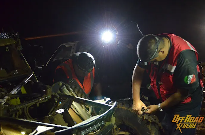 Loctite was added to the last bolts completing the Baja fix, along the coast in the middle of nowhere, at night. Being resourceful with what you have when a situation like this occurs, is what makes off-road racing and in particular racing in Baja so exciting. The buggy had a little over an hour from the time they left before the next check point would close, all they had to do was travel approximately 50 miles in the dark.