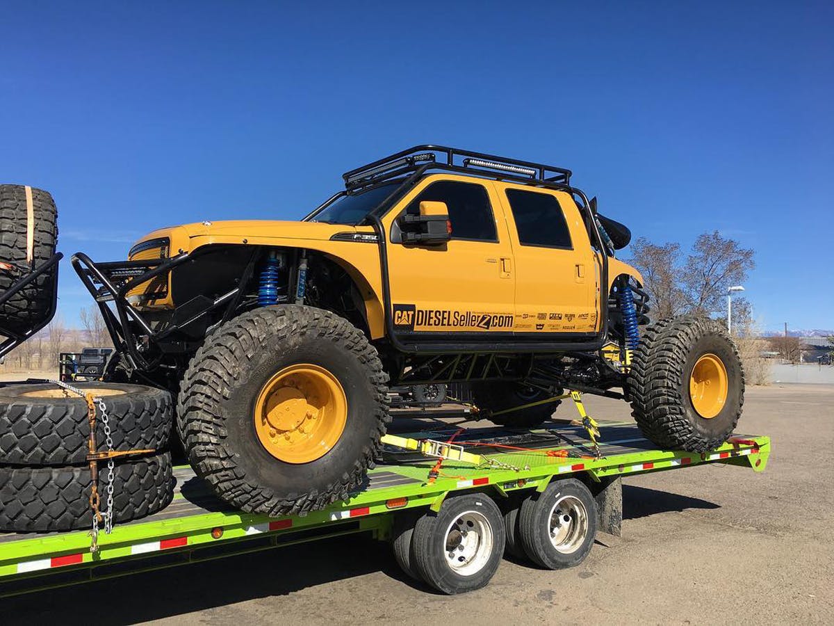 This vehicle began as a beat up Ford F350 before it started to have three square trails a day. The vehicle sits on massive Mickey Thompson 54-inch Baja Claws and military axles which push the overall width of the vehicle to 10 feet.