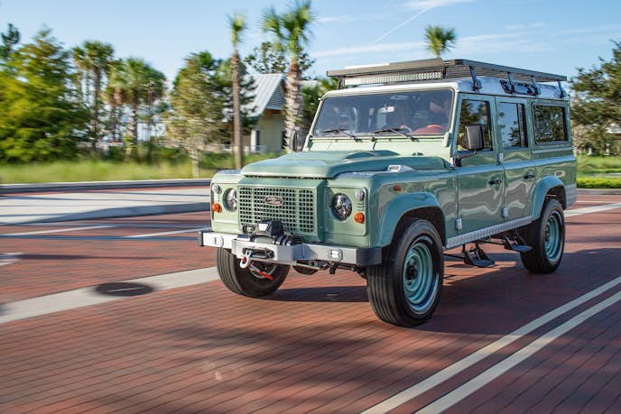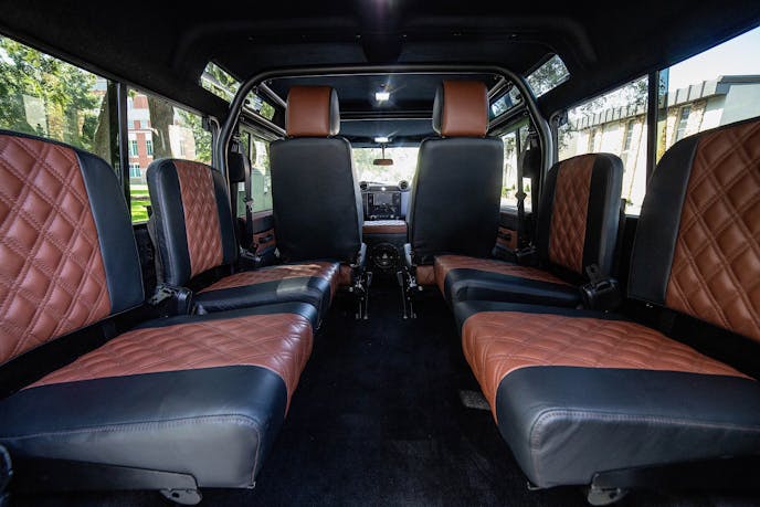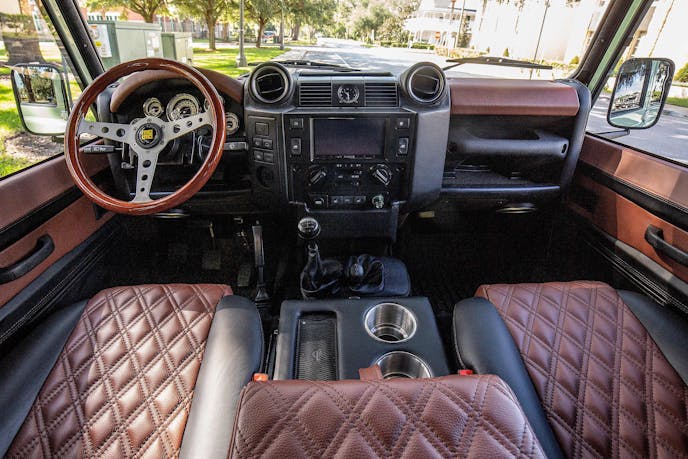 Speaking of interior mods, we’re a huge fan of how ECD gave Project S² features that focus on modern amenities and creature comforts, with luxury and tech backing it all up, but in such a way that it does not diverge from the classic feel of the vehicle. For instance, even though there’s an Alpine infotainment system in the dash that comes equipped with Apple CarPlay, wireless charging in the center console, USB ports all around, and an eight-speaker JL Audio sound system, these components actually look like they belong in this Land Rover.