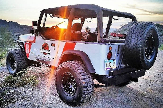This Jeep is completely the wrong year to be a replica from the original Jurassic Park as well as being rediscovered in the new Jurassic World, as that Jeep was a 1992 Wrangler Sahara.