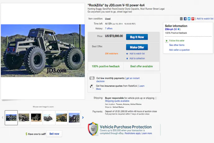 With right around four days left until the listing closes, the Rockzilla sits perched with a price tag of $72,000 Buy It Now. What do you think? Is it worth the near-Raptor level of cash? Or should it drop a few thousand bucks to get you intrigued? Pop down below and give us your two cents.