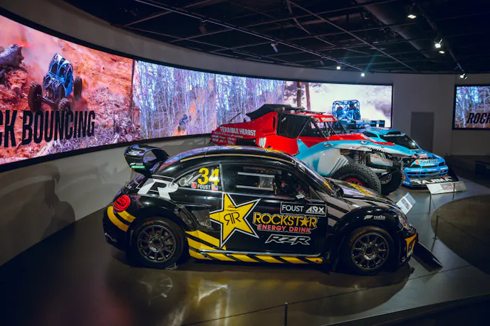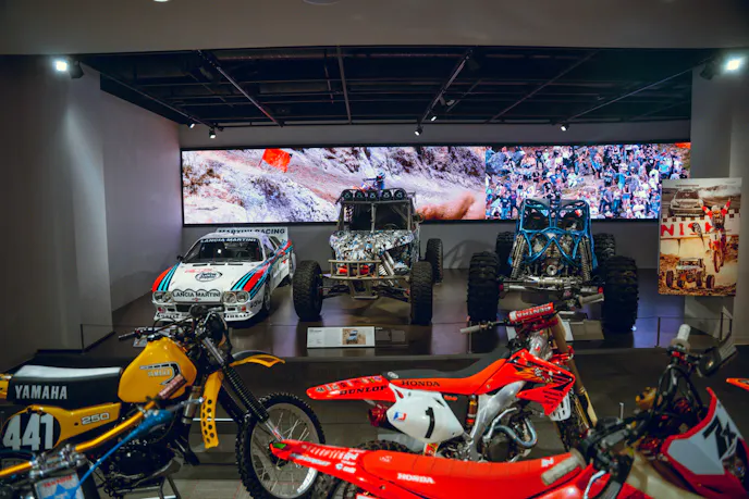 Visitors will find an all-star roster of legendary machines—each a benchmark of engineering in its era. Among them is Big Oly, the Parnelli Jones–driven Bronco that dominated Baja in the early ’70s and helped set the template for modern trophy trucks. Rally fans will gravitate to the 1983 Lancia Rally 037, the last rear-wheel-drive car ever to win a WRC title, while hillclimb devotees will recognize Nobuhiro “Monster” Tajima’s wild twin-engined Suzuki Cultus, purpose-built to conquer Colorado’s 14,115-foot ascent. Ultra4 and desert racing disciplines are represented as well, including the first Bronco-based Ultra4 racer to win King of the Hammers and the Herbst family’s iconic 1995 “LandShark,” a genre-blending Truggy that rewrote Class 1 competition. Rounding out the lineup are standout modern legends such as Tanner Foust’s race-winning Volkswagen Beetle GRC and the late Rick Huseman’s fearsome Toyota-powered Pro 4, still revered as one of the winningest machines in short-course history.