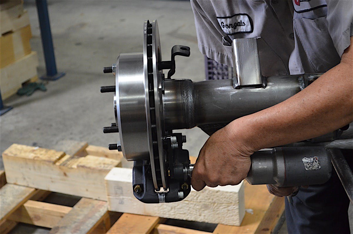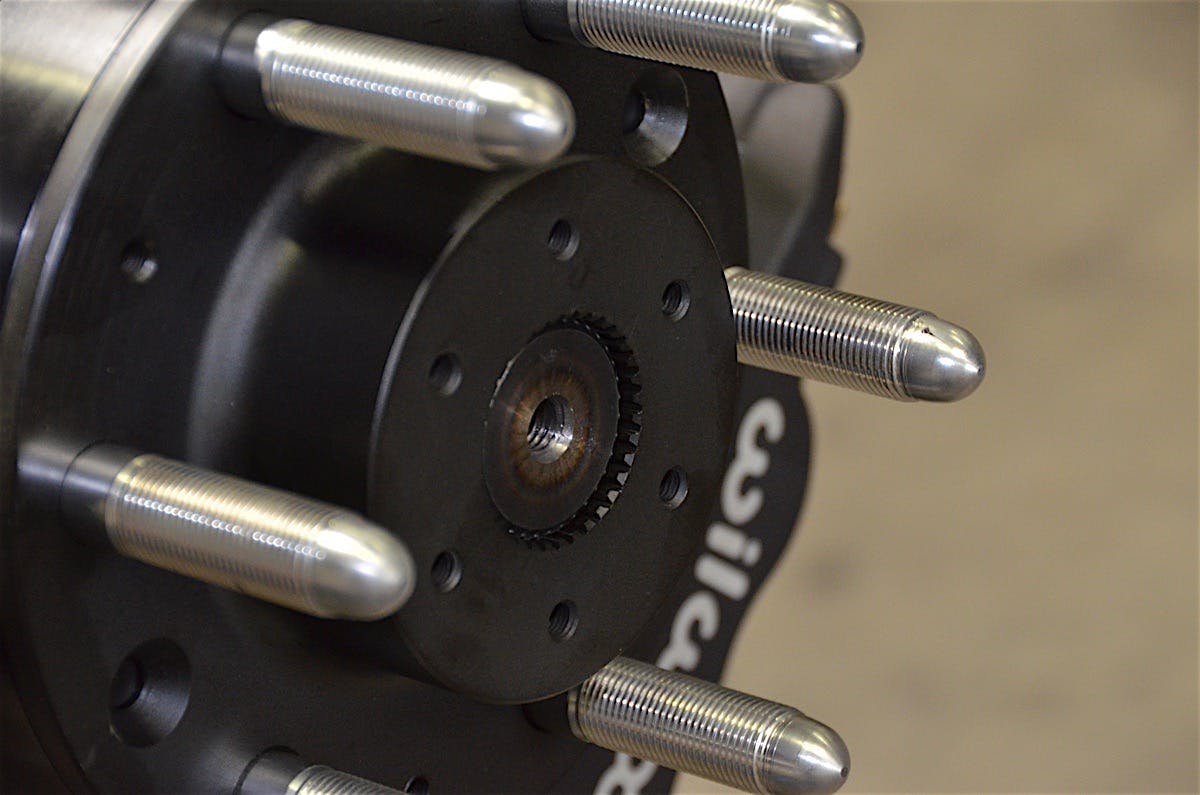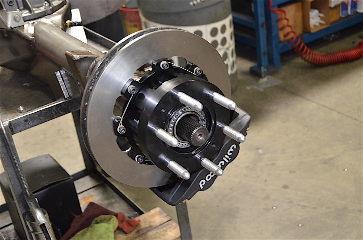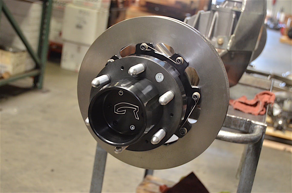 A full-float axle takes the weight of the vehicle off the axle shaft and puts it on the hub. The Currie full-float hub, in particular, allows for five, six, or eight lug pattern, plus it has a parking brake and tone-ring inside. This allows you to maintain your factory ABS and parking brake which is very important for a vehicle that sees any street usage.