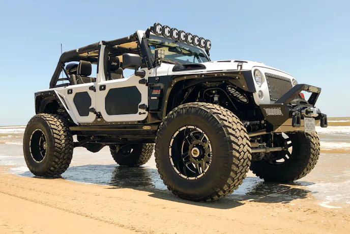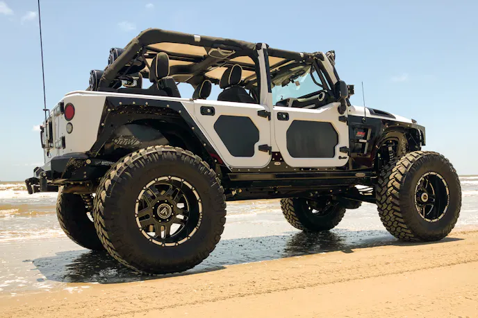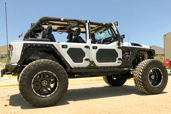 One of the first sets of Core Doors out was installed by Scott Stephens at Texas Truck Works. Texas Truck Works installed the Core Doors on a white JK that debuted at the Jeeps Go Topless event in Crystal Beach, Texas. The JK had a 6.4-Liter Hemi and Dana 60 axles.