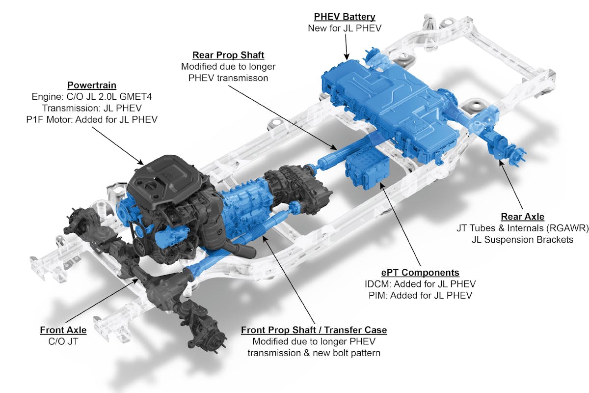 As an electric hybrid, it uses a 2.0-liter turbocharged four-cylinder as its main power plant, and uses two electric motors that can act as a backup. These motors can last only 25 miles on a full charge, however, so they’re not quite at the level of a Tesla, but they are promising. Plus, the torque-y nature of electric motors makes them a viable option for off-roading and a perfect fit for Jeeps that go rock-crawling.