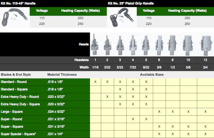 “The cutting blade is mounted on the brass head, which rapidly heats the blade,” Sukenik continued. “The depth of the cut is controlled by adjusting the position of the blade. The brass heads and razor-sharp blades are available in nine different widths. The blades also come in five different strengths and a variety of tip shapes.”
