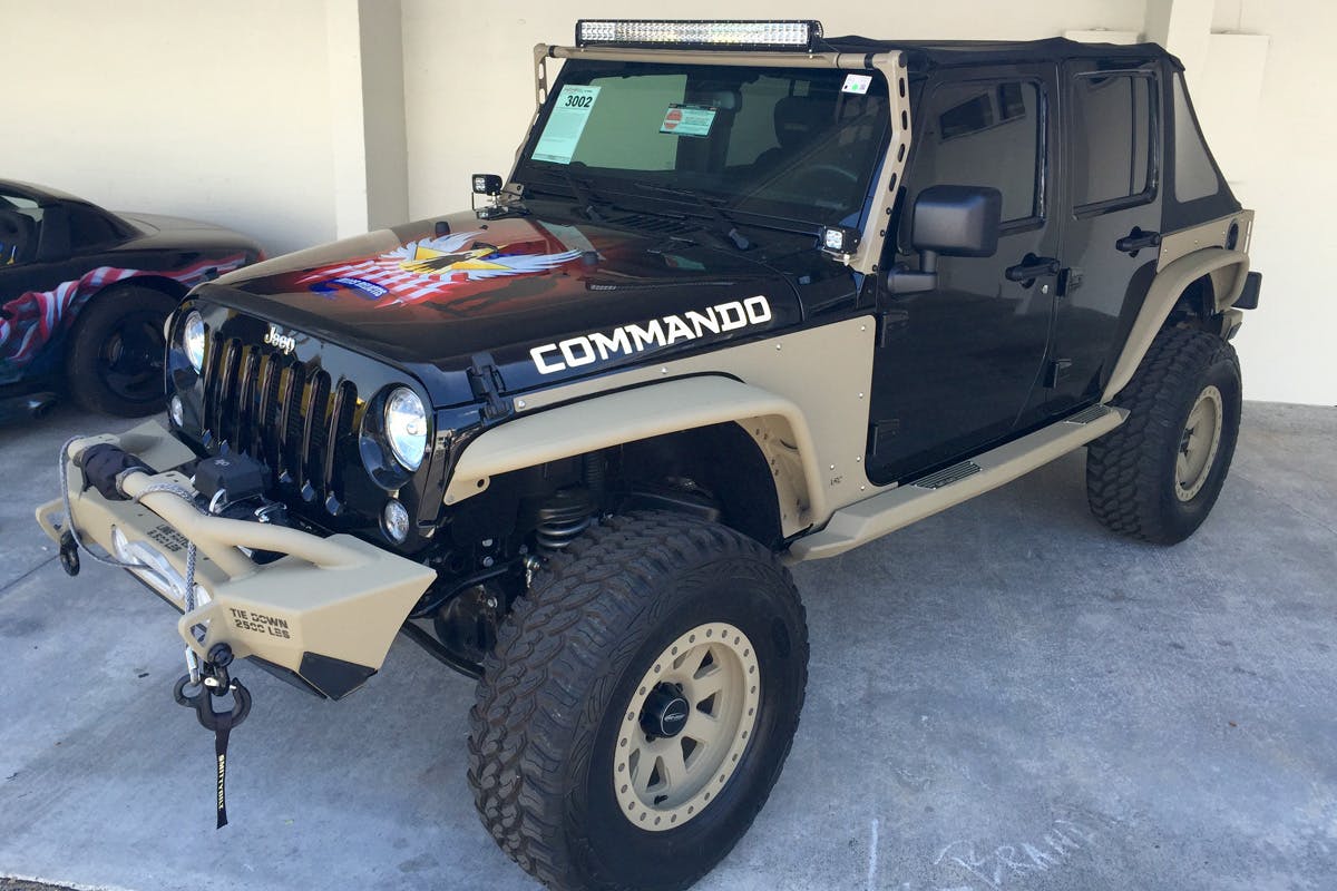 The Commando Tactical Edition Jeep was loaded with features. The Jeep is inspired by the original Hendrick Commando tactical vehicle and premiered at the 2015 Easter Jeep Safari in Moab, Utah, the Commando Tactical Edition Jeep is a collaboration between 4 Wheel Parts Dealer Services division and Hendrick Dynamics, who worked together to create this spectacular vehicle’s aggressive design, style and versatile up-fit technology, including an exact replication of the authentic Commando Tan exterior color.