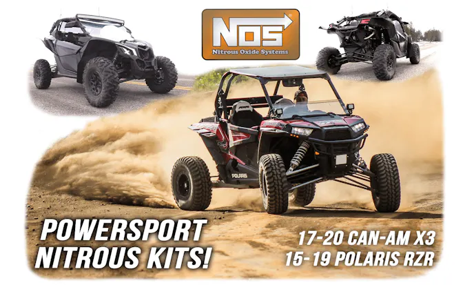Holley is pleased to announce the release of new wet nitrous systems from NOS’ powersports division – Getting tired of your buddy having a faster side-by-side? NOS has released new wet nitrous kits for Can-Am Maverick X3’s and various Polaris RZR models. These wet kits are simple to install and deliver ultimate performance at the press of a button! With gains of up to 40+ rear wheel horsepower for RZR models and 80+ rear wheel horsepower for X3’s, right now is the perfect time to upgrade your UTV.
