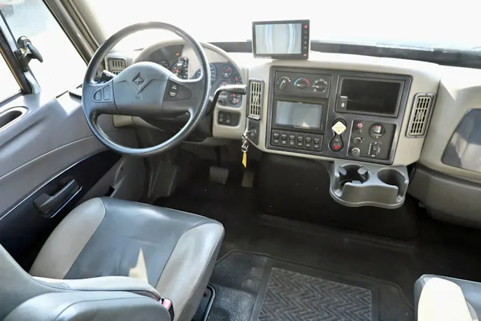 The 7.6-liter International MaxxForce DT466 I-6 turbodiesel propels the Pangea, and an Allison six-speed automatic transmission handles the power. The electronically shifted two-speed transfer case routes power to the axles. Solid axles reside under both ends of the truck, and they’re attached to leaf springs. The rear axle is fitted with a locking differential to help improve the truck’s off-road capability. In the event the big rig does get stuck while in the backcountry, it’s equipped with a front-mounted winch as well as front and rear receiver hitches.